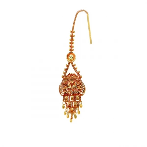 Shine like a true bride with the Contemporary Gold Mang Tikka, designed to turn heads on your special day. Meticulously crafted in 22 kt Yellow Gold, this exquisite jewellery showcases fine craftsmanship with its distinct patterns and elegant traditional style.