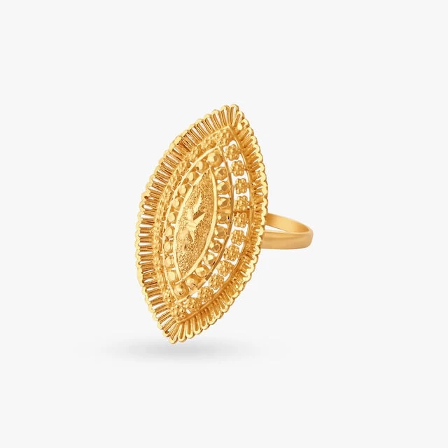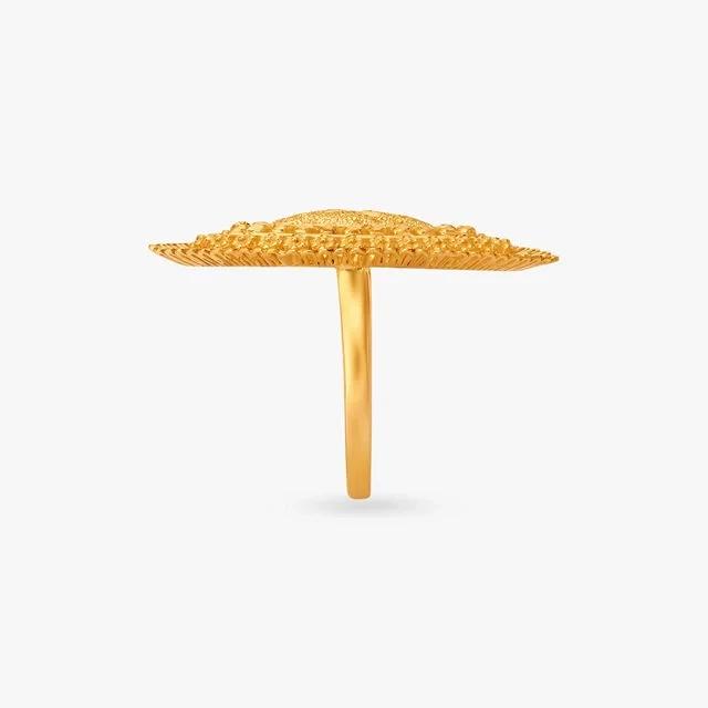 Step into a world of unique elegance with this 22 karat yellow gold ring, a refreshing addition that elevates your everyday ensemble with its distinctive flair.